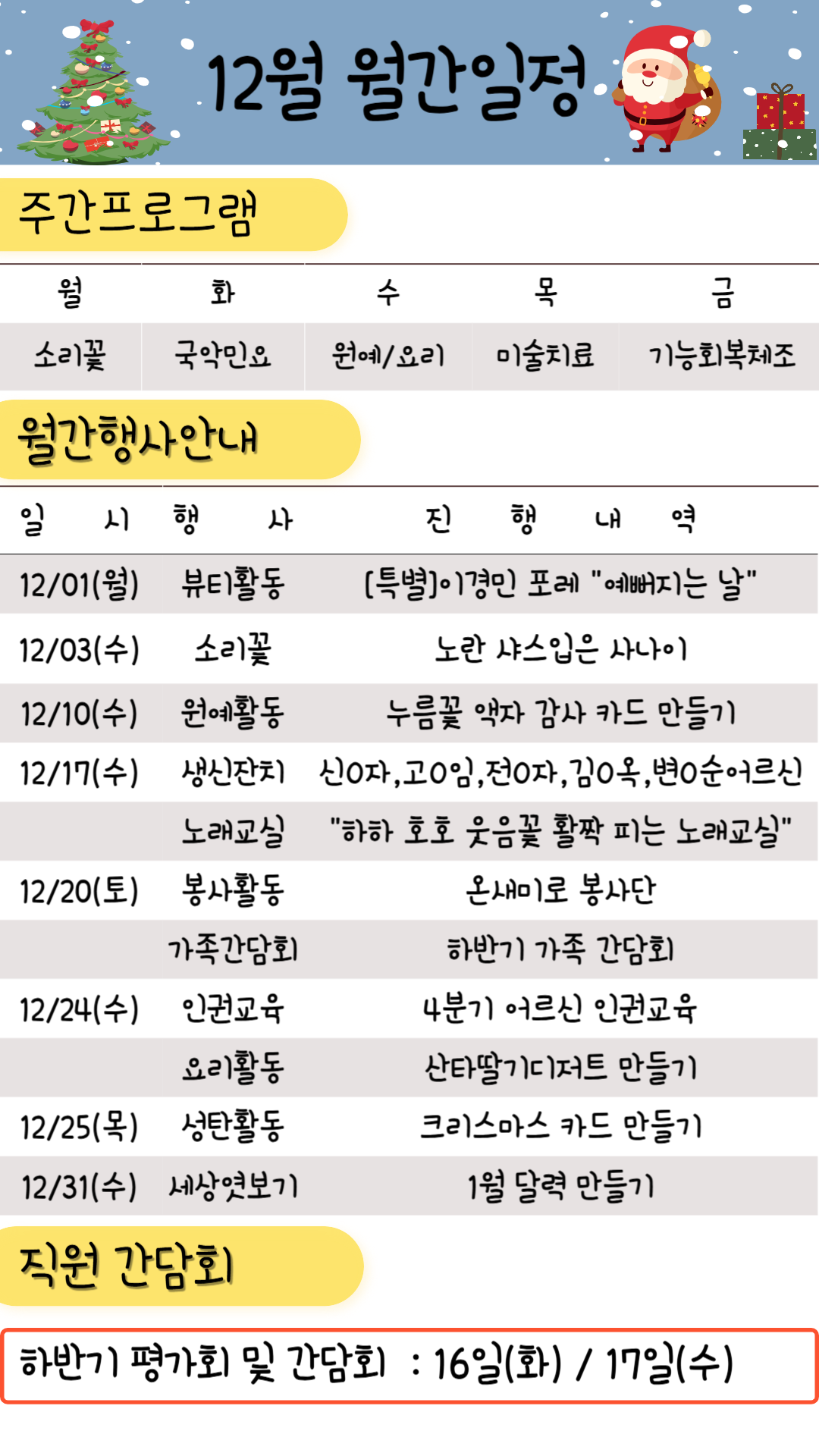 12월 월간 일정표