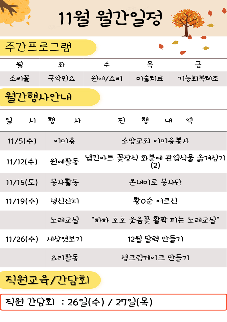 11월 월간일정표